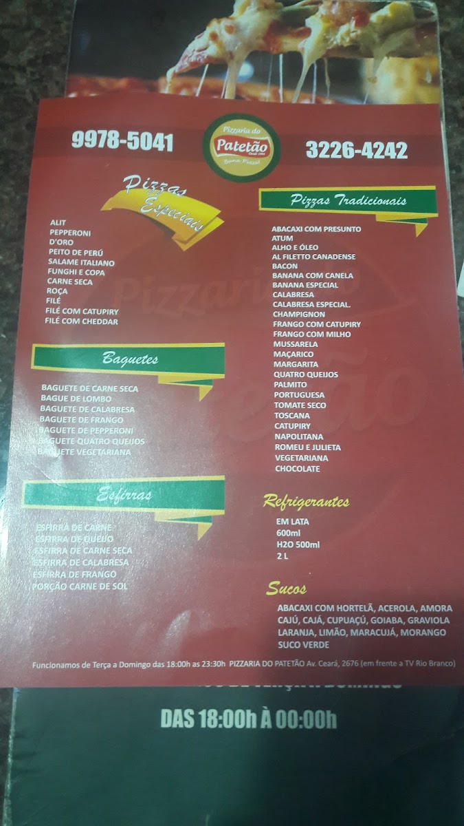 Welcome to Pizzaria do Patetão, where deliciousness meets affordability! Nestled in Dom Giocondo, Rio Branco, this pizzeria offers an array of mouthwatering pizzas that have garnered rave reviews from satisfied customers. Each pizza is crafted with a thin crust and generously filled with fresh, high-quality ingredients, making every slice a delightful experience.